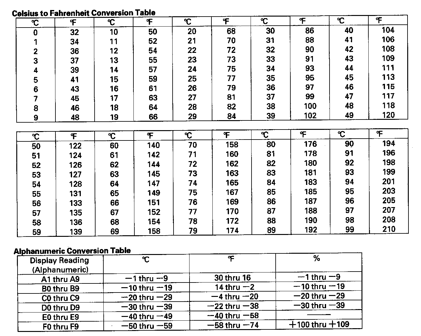 - The sensor values will be displayed in degrees Celsius (°C) or an alphanumeric code. Use the chart to convert the value to degrees Fahrenheit (°F).