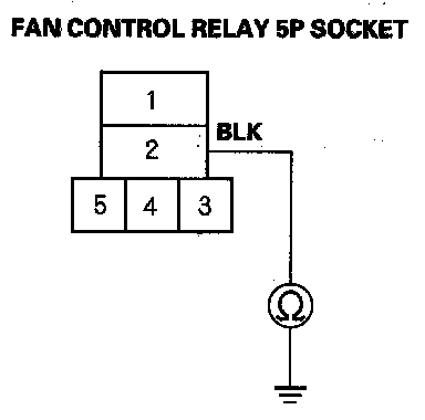 6. Check for continuity between the No. 2 terminal of the fan control relay 5P socket and body ground.