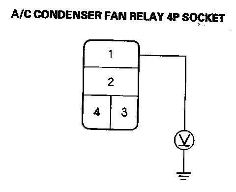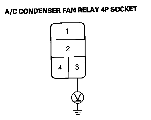 3. Measure the voltage between the No. 1 terminal of the A/C condenser fan relay 4P socket and body ground.