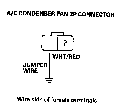 17. Connect the No. 1 terminal of the A/C condenser fan 2P connector to body ground with a jumper wire.