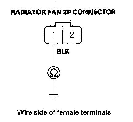 29. Check for continuity between the No. 1 terminal of the radiator fan 2P connector and body ground.