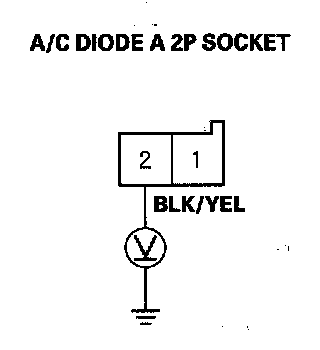34. Measure the voltage between the No. 2 terminal of A/C diode A 2P socket and body ground.