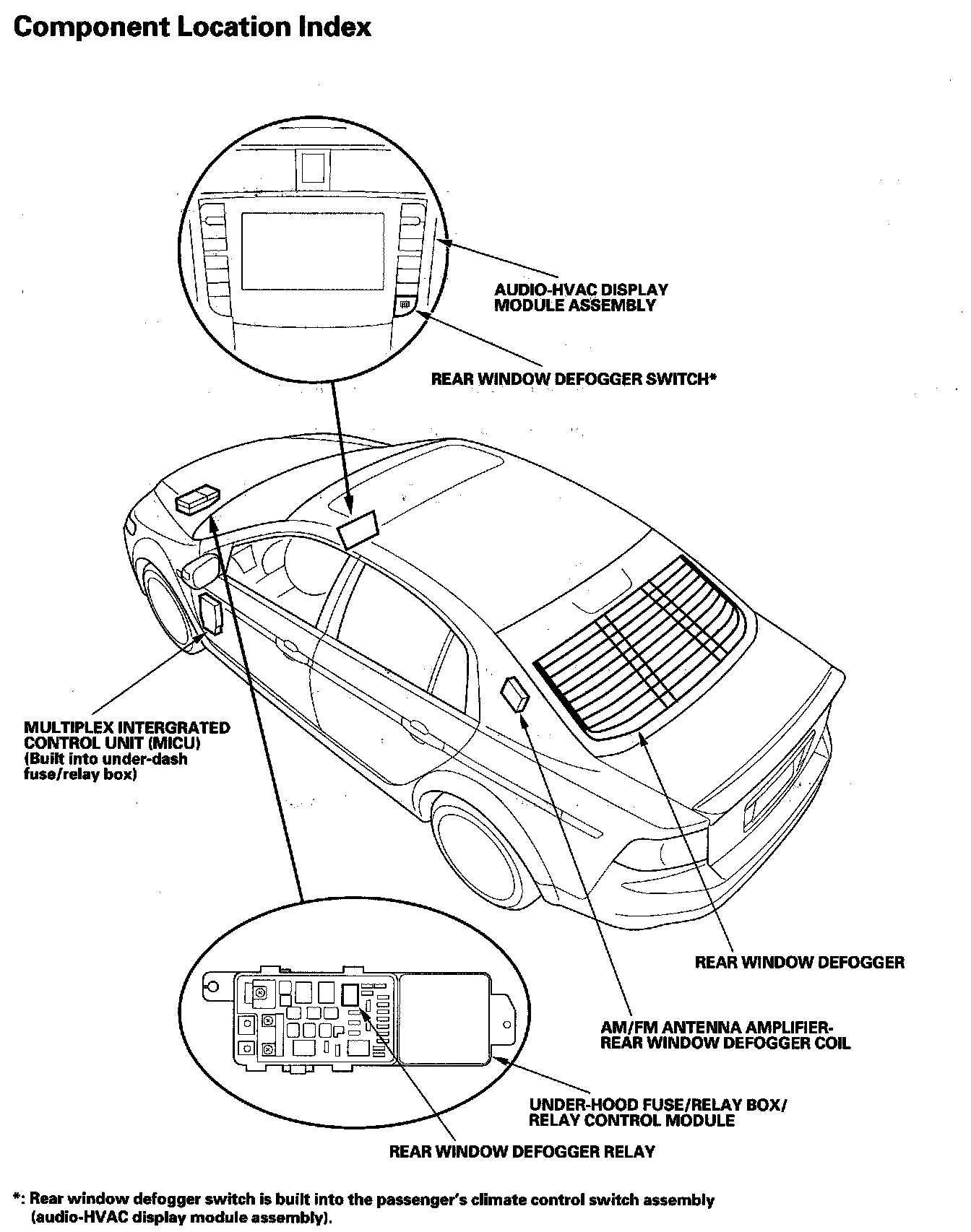 Rear Window Defogger Component Location Index: