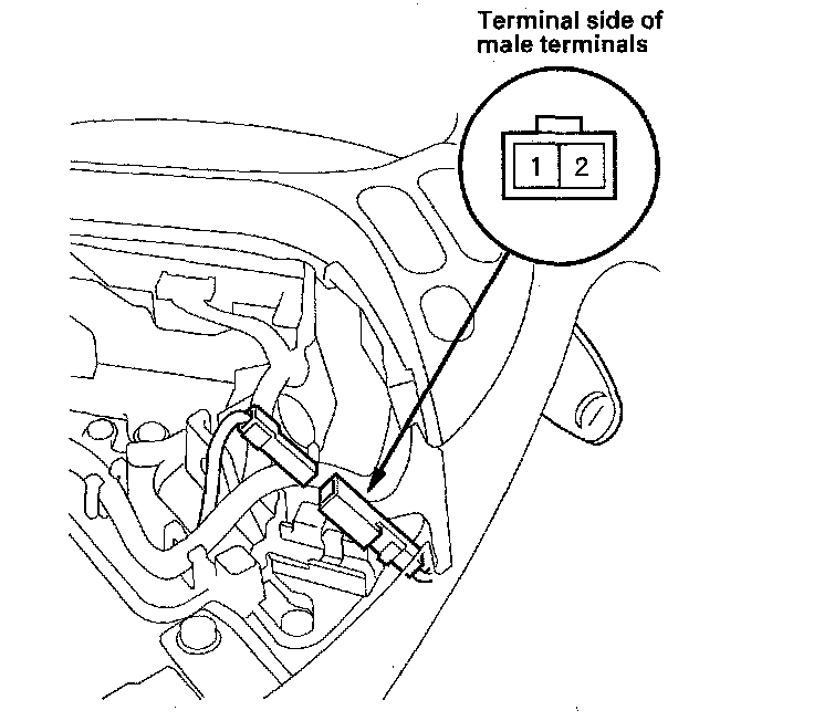 5. Check the paddle shifter - (downshift switch) for continuity between the paddle shifter - (downshift switch) connector terminals while pressing the paddle shifter - and when the paddle shifter - is released.