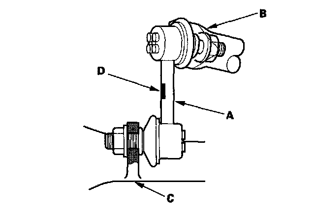 NOTE: The left stabilizer link has a yellow paint mark (D), while the right stabilizer link has a white paint mark.