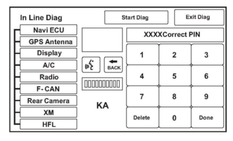 The in-line diag screen shown below is an example only. The vehicle you are working on should look similar.