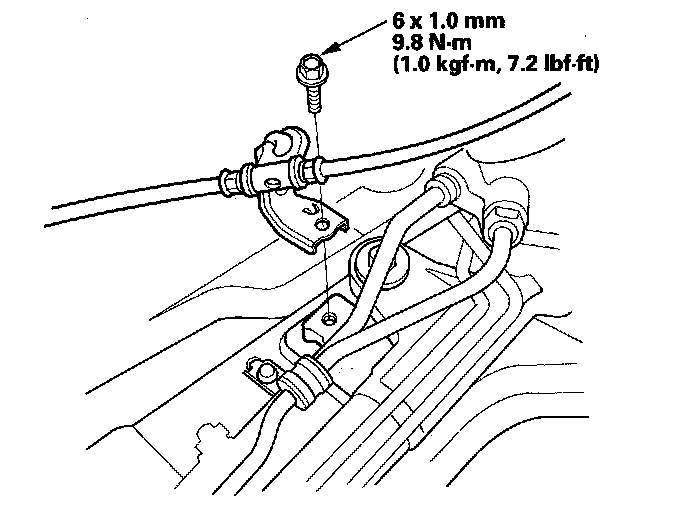 19. Install the shift cable bracket on the front subframe.