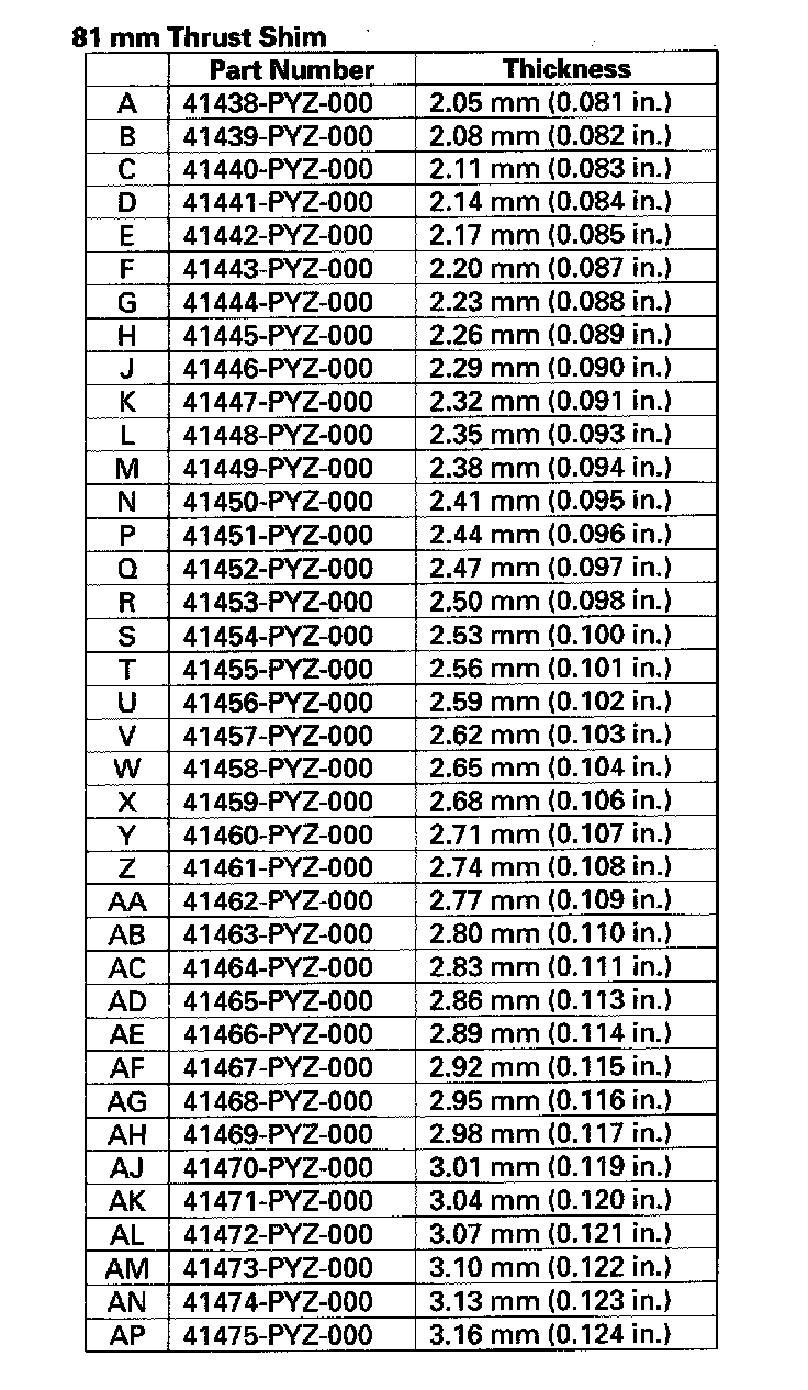 9. If the carrier bearing preload is not within the standard, select an 81 mm shim that will provide the correct preload: