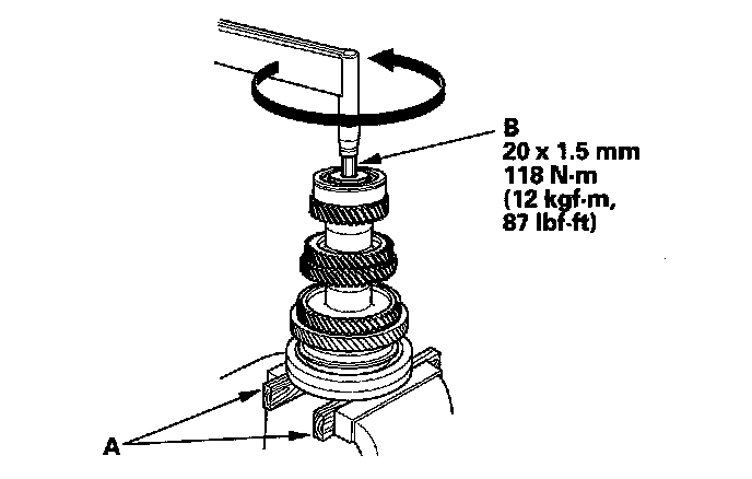 22. Tighten the new 20 mm special bolt (B) (left-hand threads).
