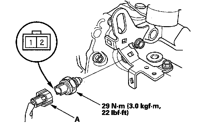 8. Check for continuity between the back-up light switch 2P connector terminals No. 1 and No. 2. There should be continuity when the shift lever is only in reverse.