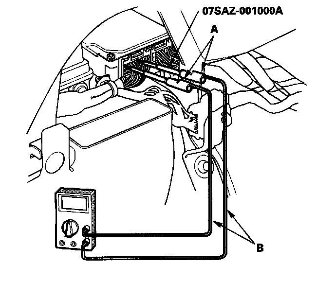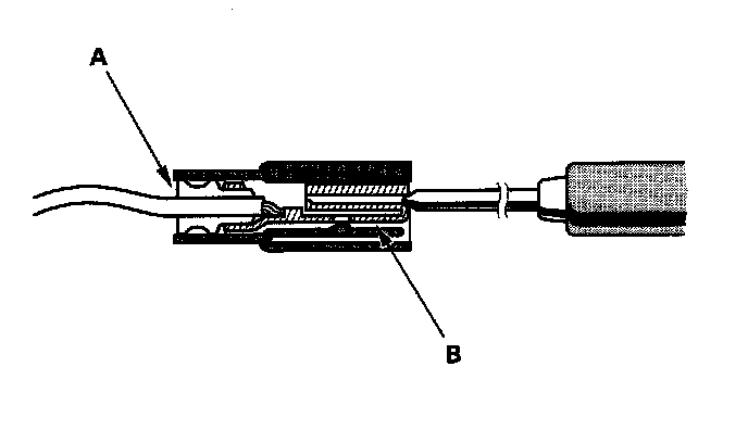 3. If you can not get to the wire side of the connector or the wire side is sealed (A), disconnect the connector and probe the terminals (B) from the terminal side. Do not force the probe into the connector.