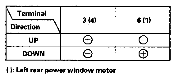 3. Test the motor by connecting battery power and ground according to the table. When the motor stops running, disconnect one lead immediately.