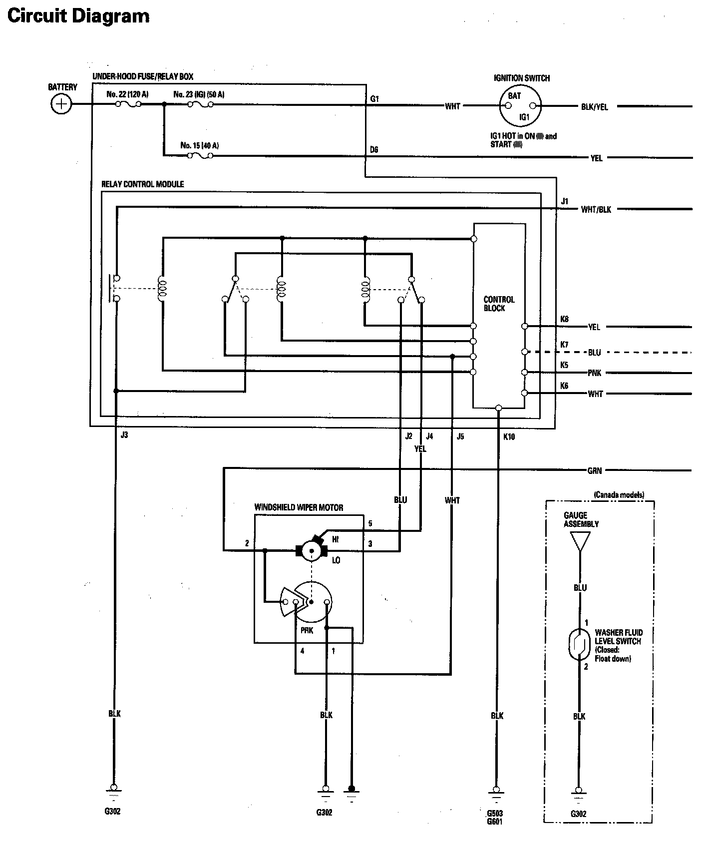 Wipers/Washers Circuit Diagram