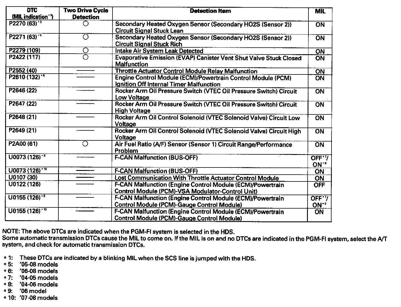 DTC List - Fuel and Emissions