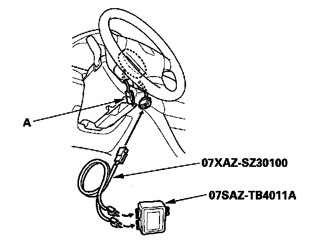 4. Disconnect the driver's airbag 4P connector (A) from the cable reel.