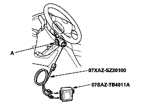 4. Disconnect the driver's airbag 4P connector (A) from the cable reel.