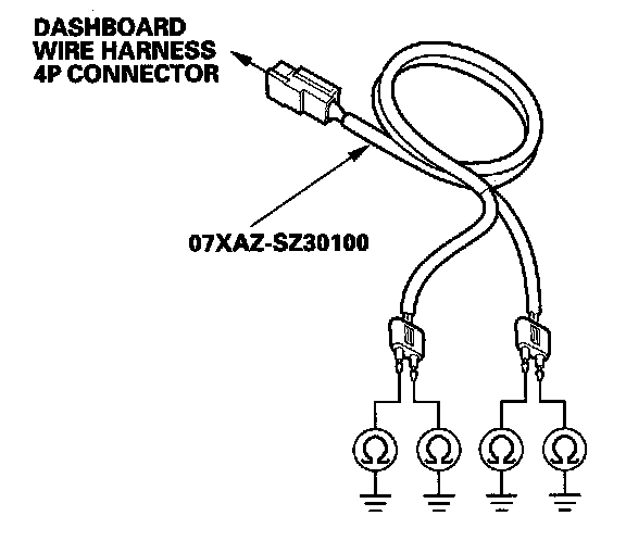 11. Connect the SRS inflator simulator (2 ohms connectors) and the simulator lead to the dashboard wire harness.