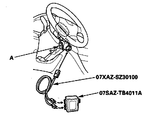 4. Disconnect the driver's airbag 4P connector (A) from the cable reel.