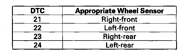 7. Check the appropriate wheel sensor/encoder (see table).