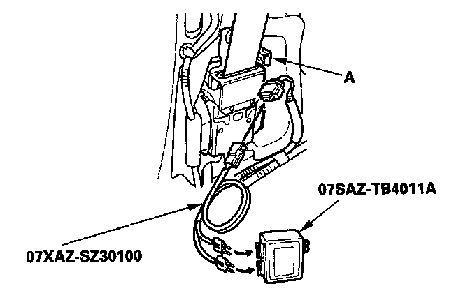 4. Disconnect the front passenger's seat belt tensioner 4P connector (A) from the floor wire harness.