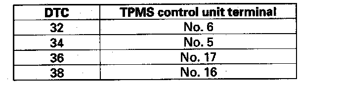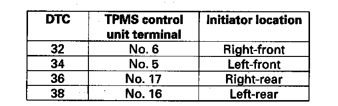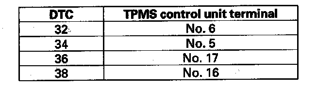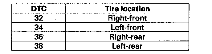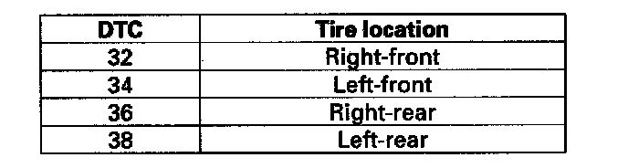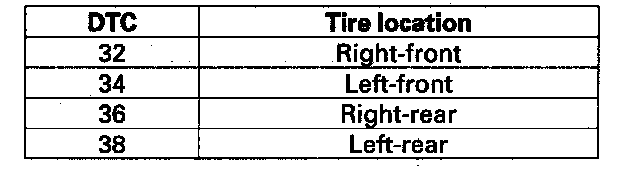 DTC 32, 34, 36, 38: Tire Pressure Sensor Transmission FailureNOTE: