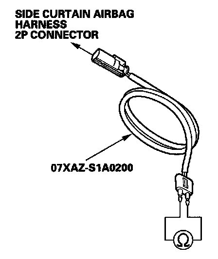 11. Disconnect the SRS inflator simulator from the SRS simulator lead. Do not disconnect the simulator lead from the side curtain airbag harness 2P connector.
