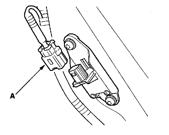 6. Disconnect the side curtain airbag harness 2P connector (A) from the left side impact sensor (second).