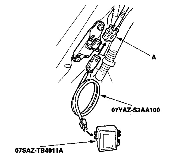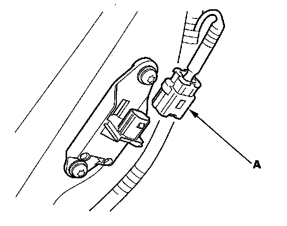 6. Disconnect the side curtain airbag harness 2P connector (A) from the right side impact sensor (second).