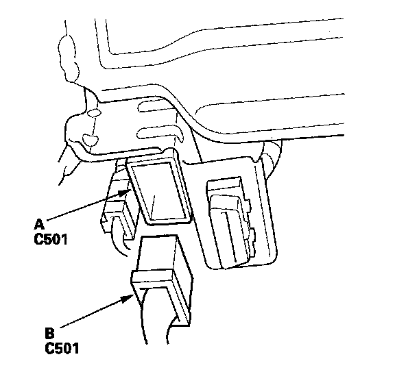 11. Disconnect dashboard wire harness 24P connector C501 (A) from the floor wire harness C501 (B).