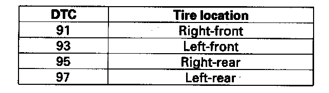 DTC 91, 93, 95, 97: Tire Pressure Sensor Internal Error1. Turn the ignition switch ON (II).