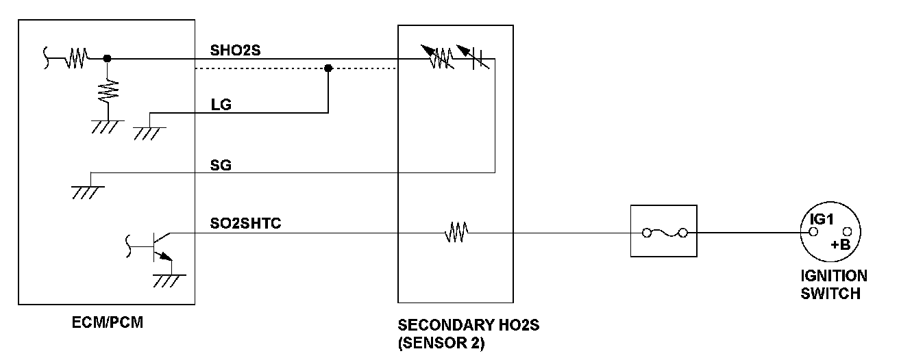 If the secondary HO2S heater draws no more, or no less than a specified amperage, the ECM/PCM detects a malfunction and a DTC is stored.