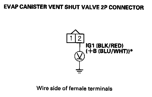 8. Measure voltage between EVAP canister vent shut valve 2P connector terminal No. 2 and body ground.