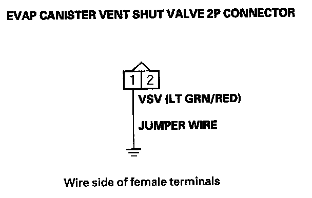 13. Connect EVAP canister vent shut valve 2P connector terminal No. 1 to body ground with a jumper wire.