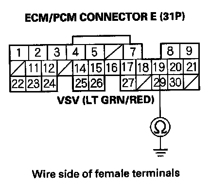 14. Check for continuity between ECM/PCM connector terminal E19 and body ground.