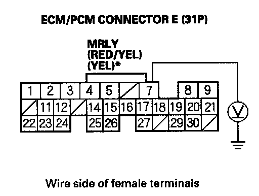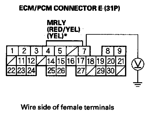 10. Measure voltage between ECM/PCM connector terminal E7 and body ground.