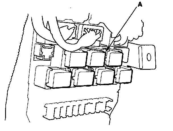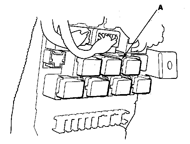 11. Remove the left kick panel, then remove PGM-FI main relay 1 (FI MAIN) (A) from the under-dash fuse/relay box.