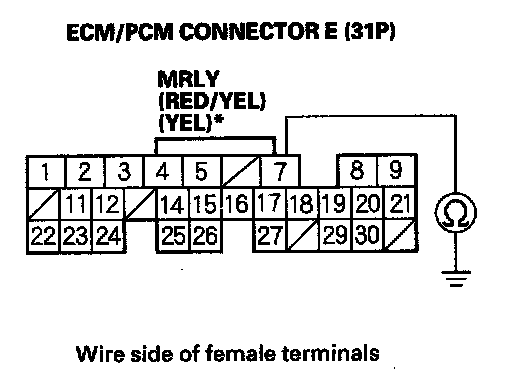YES - Check for poor connections or loose terminals at PGM-FI main relay 1 (FI MAIN) and the ECM/PCM, then go to step 1.