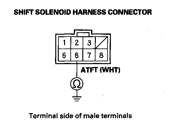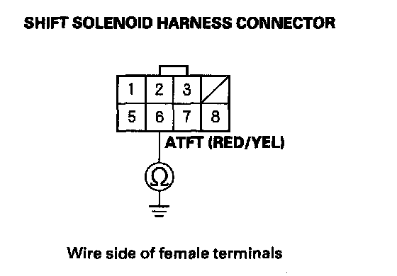 11. Check for continuity between shift solenoid harness connector terminal No. 6 and body ground.