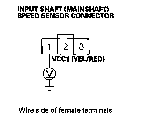 13. Measure the voltage between input shaft (mainshaft) speed sensor connector terminal No. 1 and body ground.