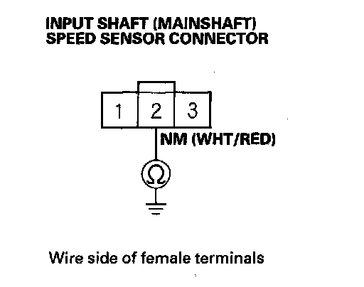 16. Check for continuity between input shaft (mainshaft) speed sensor connector terminal No. 2 and body ground.