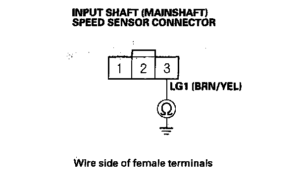 17. Check for continuity between input shaft (mainshaft) speed sensor connector terminal No. 3 and body ground.