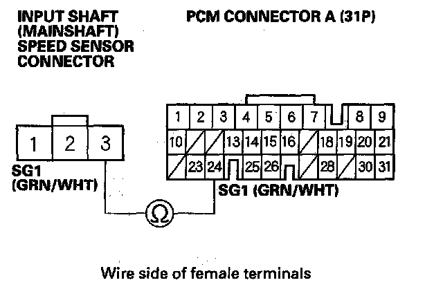9. Disconnect PCM connector A (31P) and the input shaft (mainshaft) speed sensor connector.