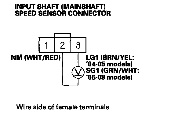 21. Measure the voltage between input shaft (mainshaft) speed sensor connector terminals No. 2 and No. 3.