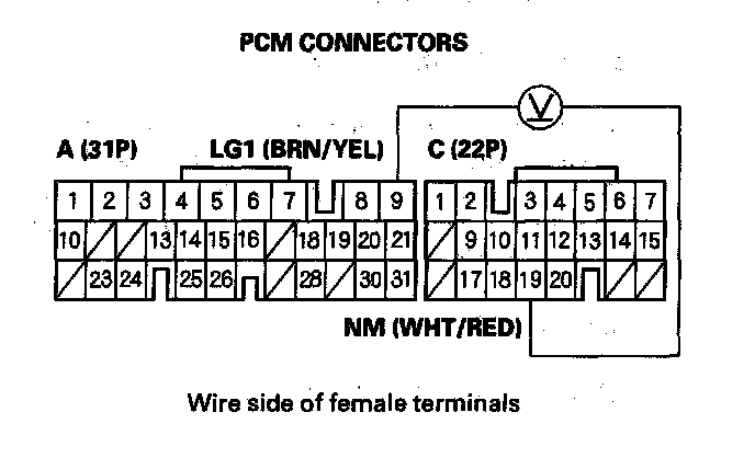 YES - Connect PCM connectors A (31P) and C (22P), and go to step 20.