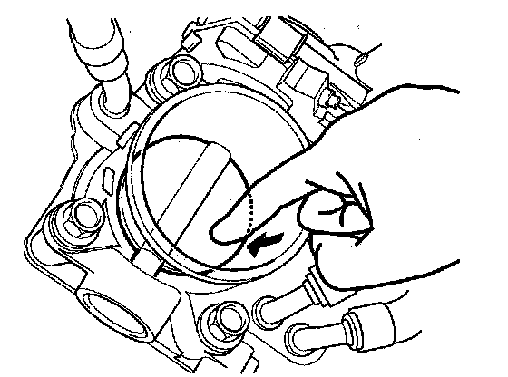 9. Push the throttle valve closed as shown.