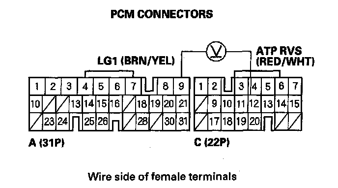 8. Measure the voltage between PCM connector terminals C12 and A9.