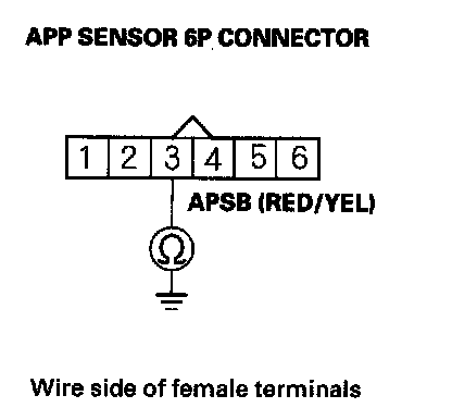 10. Check for continuity between APP sensor 6P connector terminal No. 3 and body ground.