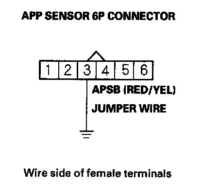 11. Connect APP sensor 6P connector terminal No. 3 to body ground with a jumper wire.