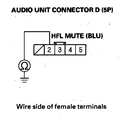 13. Check for continuity between body ground and audio unit connector D (5P) terminal No. 2.