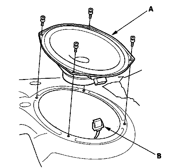 2. Remove the four mounting bolts from the rear speaker (A).